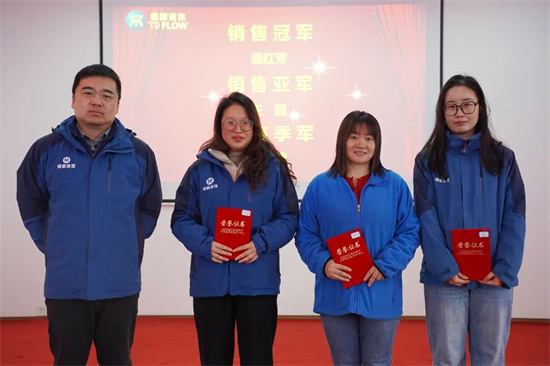 黨委書記楊凌杰為銷售冠軍潘紅芳、亞軍王園、季軍朱川渝頒獎(jiǎng)